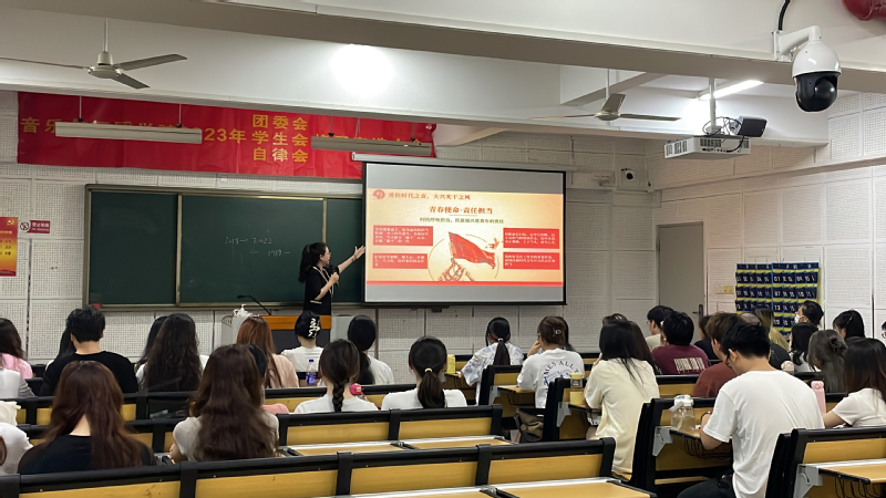 为深入学习贯彻习近平新时代中国特色社会主义思想和党的二十大精神,提高团员的理论素养、专业技能和实践能力,音乐与舞蹈学院团委会组织开展了“高校团干部上讲台第一课活动”之团委书记讲团课活动。2023年9月8日,学院团委书记刘晓莹以《建功立业新时代·不负青春不负党》为题,与音舞学院团学组织干部、各班团员代表一起进行学习,以知行合一的方式将习近平新时代中国特色社会主义思想在广大团员的心中播撒生花。