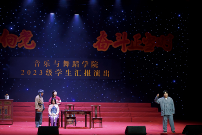 汇报演出以“青春心向党•奋斗正当时”为主题,分为“青春为马,共赴韶华”“不负重托,砥砺前行”两个篇章展现,汇集了我院2023级本硕学生声乐、器乐、舞蹈、歌剧、合唱等节目,以高雅艺术表达青春热爱,用热忱之情奏响奋斗之歌,极大鼓舞了在场师生牢记使命,砥砺前行。