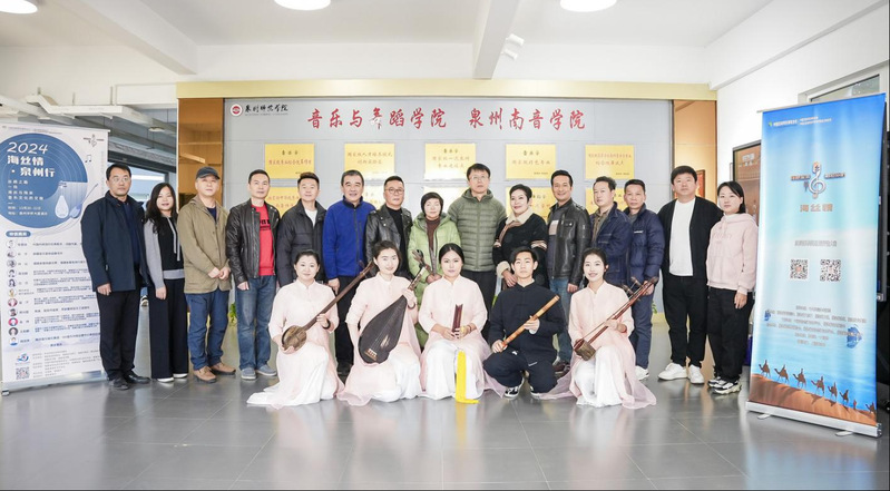 肖山一行参观了福建省社科基地南音研究中心,并观看南音表演。中国内地流行音乐知名男歌手李春波等人与我院师生展开了深入的交流互动,新疆师范大学音乐学院声歌系教师阿力木江·阿不都克日木在交流中还以歌唱和南音乐器为桥梁,建立起了南音与十二木卡姆的交融互动,共同探讨南音的传承、保护与发展。
