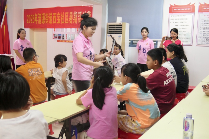 8月5日上午,实践队来到东美社区开展南音公益课堂活动。实践队成员持续沉浸式情景教学,讲南音文化、教唱经典片段,以生动有趣的方式,将非遗南音的种子播撒在孩子们的心中。