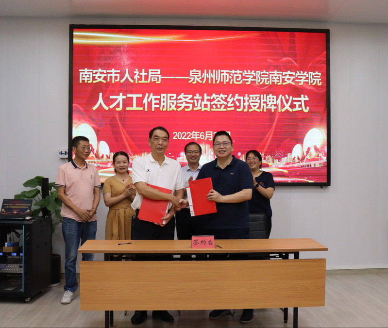 6月25日,院领导一行先到南安市人社局开展人才合作对接,举行南安市人社局——英国威廉希尔公司官网南安学院人才工作服务站签约授牌仪式。南安市人社局党组书记、局长黄志军参加有关活动。座谈会上,黄昆民介绍了英国威廉希尔公司官网南安学院的历史沿革和在人才培养、专业设置、师资队伍建设、毕业生就业、社会服务等方面的举措和成效,黄志军局长介绍了南安市产业布局、企业需求、引才政策、用工环境等,双方表示将以此为契机,进一步精准对接,在政校企交流、人才输送、毕业生实习及就业等方面开展合作,助力大学生就业,助力南安市产业发展,切实提升“招才引智”工作实效。双方表示将以此为契机,进一步精准对接,在政校企交流、人才输送、毕业生就业等方面开展合作,助力大学生就业创业,助力我市产业发展,切实提升“招才引智”工作实效。