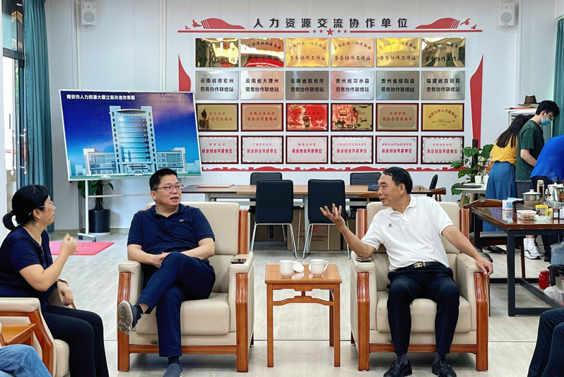会后,院领导一行同南安市人社局相关领导实地走访了泉州市南翼置业发展集团有限责任公司、万家美针织公司等企业,与有关企业负责人进行座谈交流并参观了企业的生产车间及教育基地,双方希望在提升人才培养质量、校企研究交流、学生实习就业等方面加强协作。