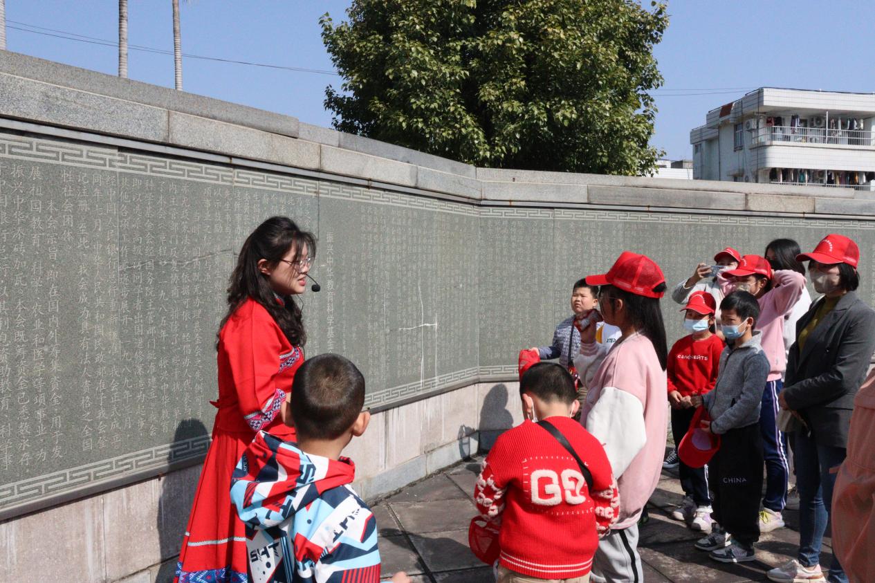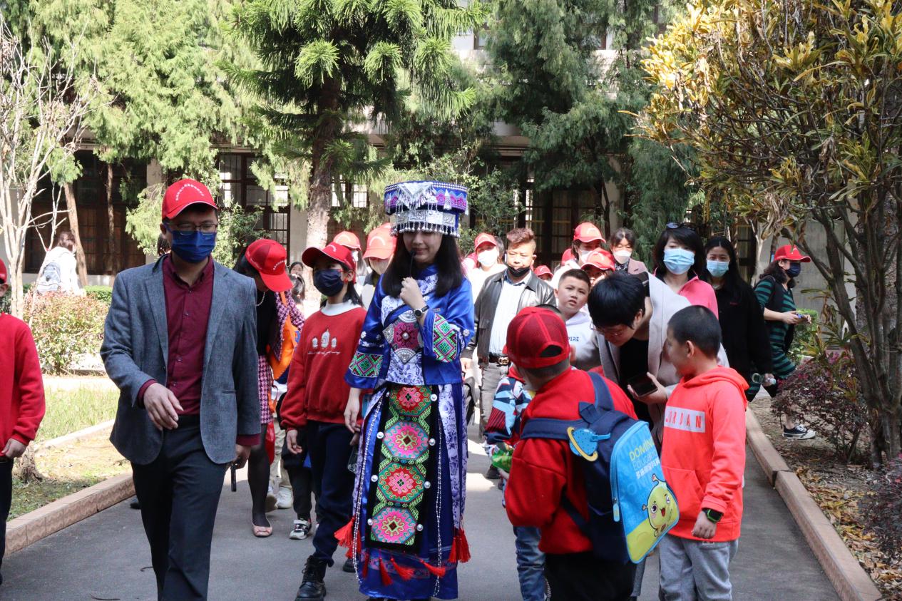 亲子研学团在身着民族服装的民族学生带领下,参观了新加坡侨领陈水俊纪念馆,了解陈水俊先生的生平经历,感受陈水俊先生的爱国之情。走进欧阳詹读书亭,了解在南安校区高盖山求学过的唐代文学家欧阳詹的求学故事,感受闽南第一位进士带来的诗词魅力。在民族工作室里,民族学生为中小学生讲述各自民族的历史、风情及民族团结故事,并近距离参观陈列于此的民族服饰、乐器、手工艺品等。参观过后,我校民族预科班学生身着传统民族服饰为中小学生表演了哈萨克族民族舞蹈,让孩子们“沉浸式”感受浓厚的民族风情。