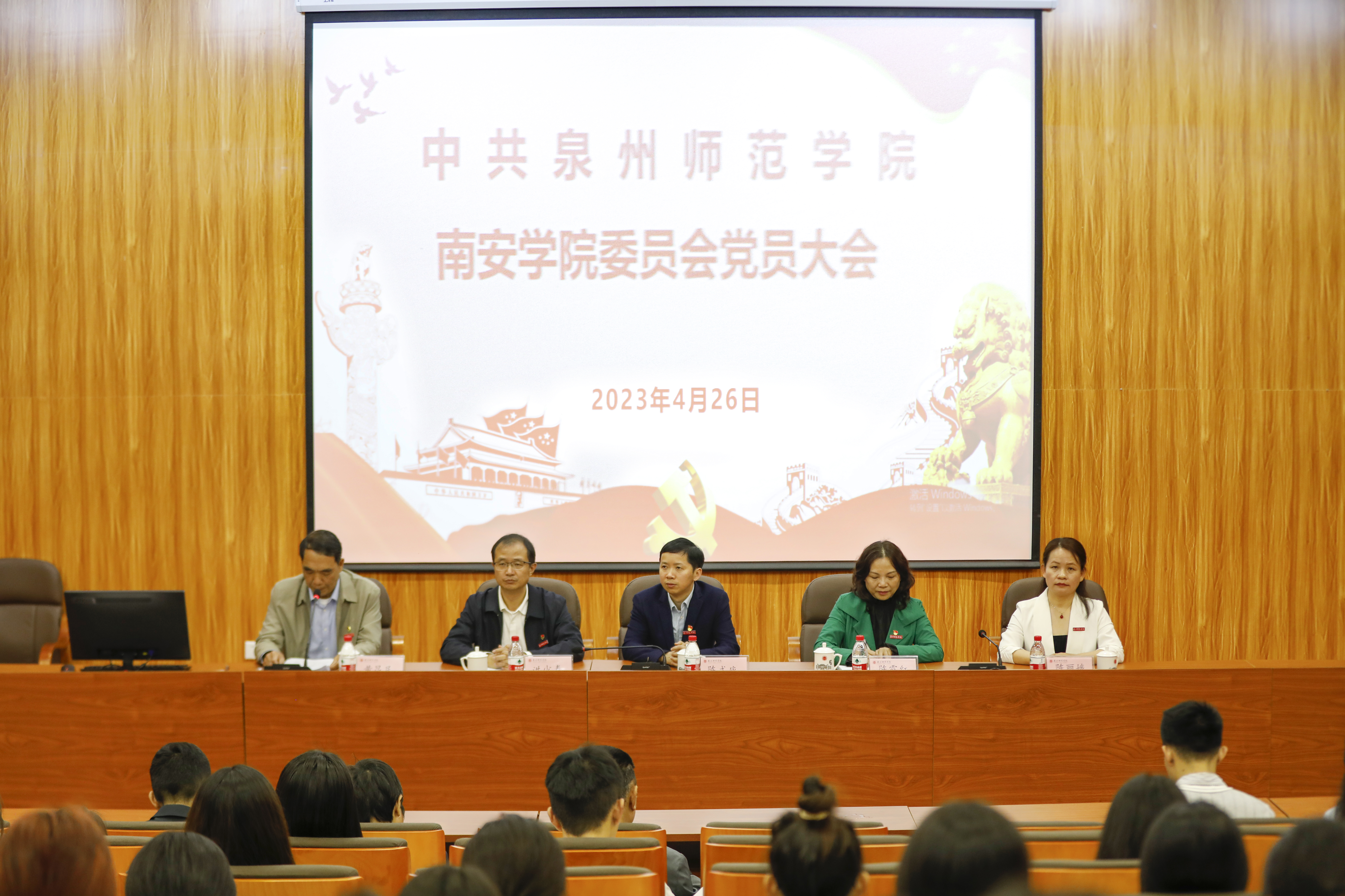 4月26日,南安学院党员大会在南安校区黄仲咸学术报告厅召开,校党委组织部干部科科长陈式座、外国语学院党委书记蒋双霖、航海与交通学院党委书记陈霞红等莅临指导。大会由南安学院党委副书记、常务副院长(主持)黄昆民主持会议,全体党员参加会议。