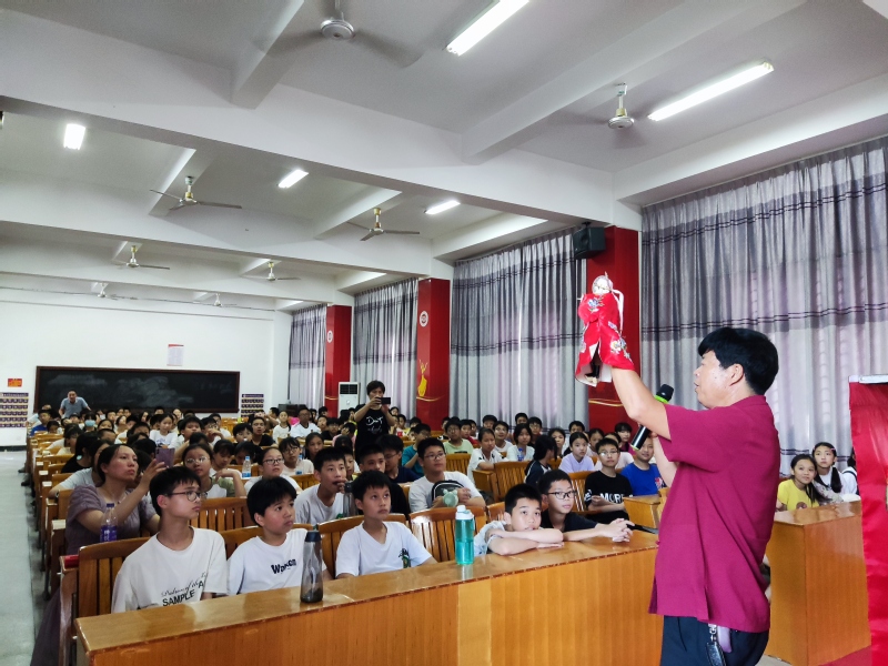 黄德模师傅正在表演布袋戏