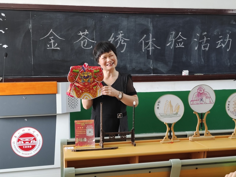 刘婉娥师傅在讲解金苍绣的制作过程
