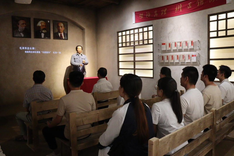 在体验馆内,参加人员在讲解员的带领下,逐一参观了主体墙、序言厅、展陈区、人民公仆通道、红色家风长廊、党员心声亭、体验感悟室、心灵对白室等特色区域,身临其境地体验了在延安窑洞里聆听毛泽东讲党课,坚定“坚持真理、纠正错误”的决心。
