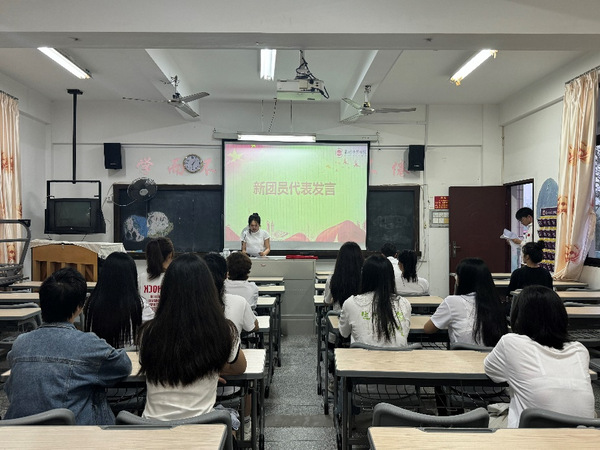 随后,新团员代表张惠玲同学发言,她表示作为新团员一定会忠于自己的入团誓言,把铮铮誓言化作心中坚定的信念,在学习和生活中不断提高自身的素质和修养。以高昂的姿态团结在团旗下,扬起理想的风帆,焕发青春的激情向着新的目标乘风破浪勇往直前,开启新的更壮丽的世界远航。