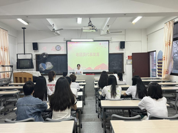 老团员代表黄艺敏同学发言,首先她对新团员们表示热烈的祝贺和诚挚的欢迎,呼吁全体团员把全民族的共同理想作为自己的理想和追求,切实增强政治意识、组织意识,模范意识,不负组织的殷切期望,不辱共青团光荣称号,才能更好地融入团队和社会,实现自己的理想,同时也认为自己需要做到模范带头作用,尽心尽力履行职责、做出贡献。