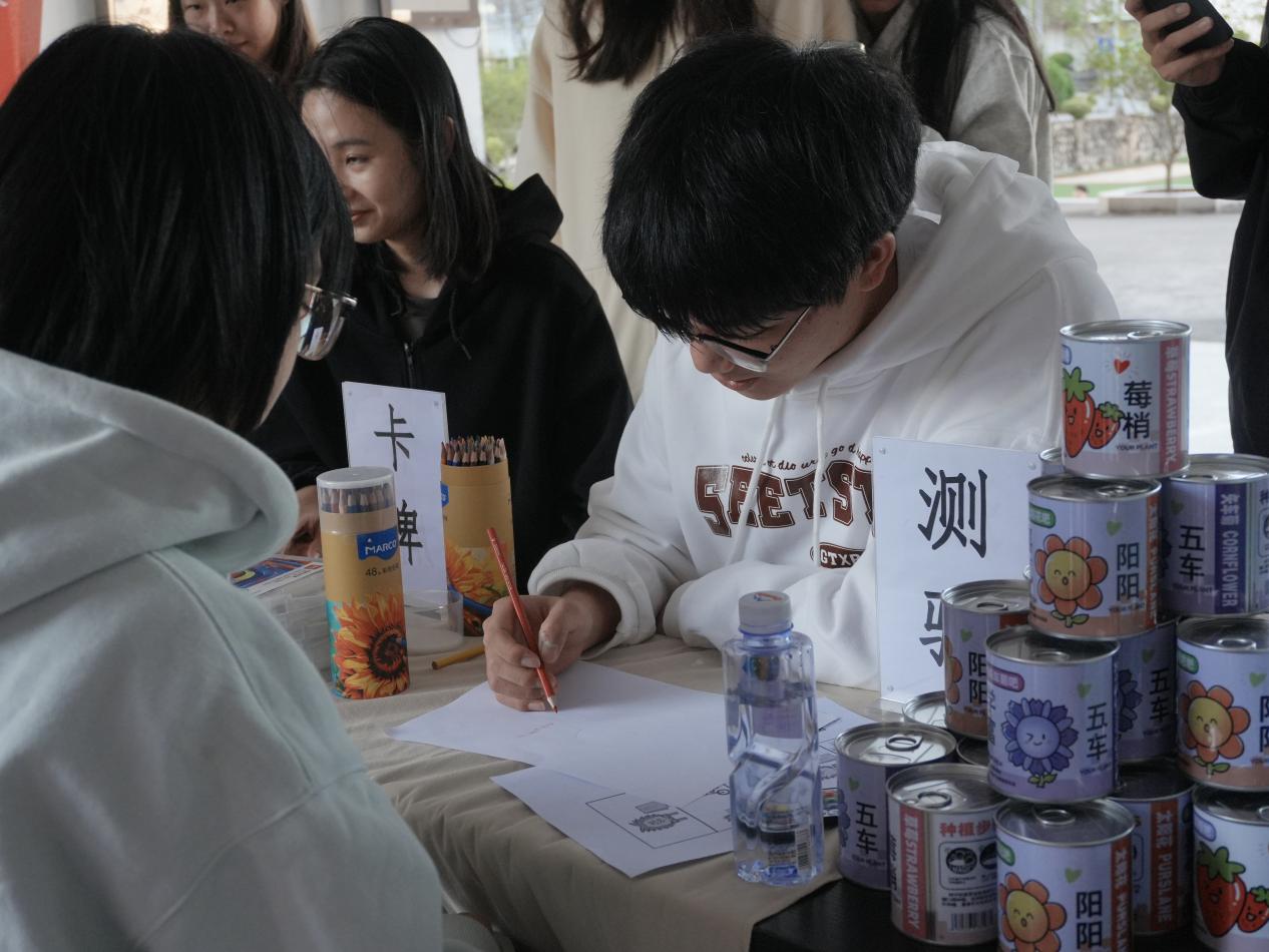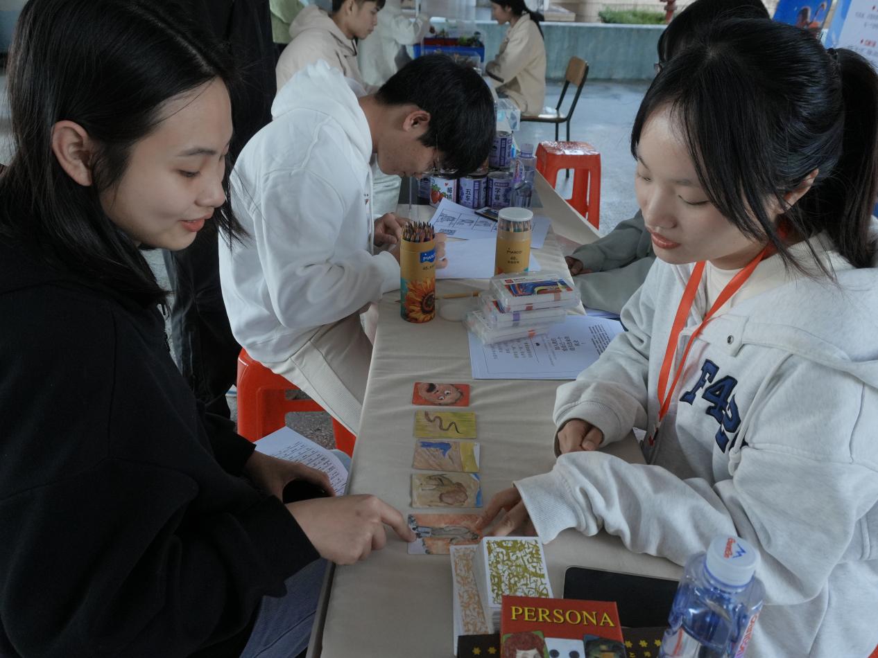 活动主场地设在诗山楼架空层,在这里开展了释梦体验、OH卡牌、心理测验和绘画分析等活动。校心理发展指导中心的林毅辉老师和“心理护航”朋辈互助员们,通过现场一对一的互动交流与心灵探寻环节开展心理义诊,他们运用丰富的心理辅导经验悉心为在场学生答疑释惑,帮助同学们寻找适合自己的心理调适之道。