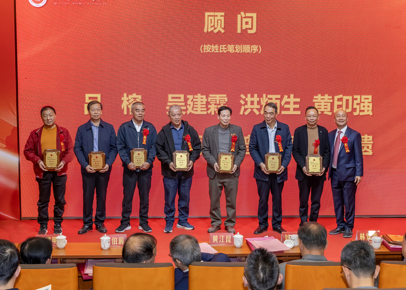 新当选的校友会会长叶少鸣向吴建霖、洪炳生、黄印强、黄昆民、黄振平、曾文章、颜遐遗顾问颁发聘书