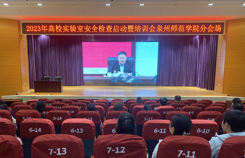 为确保我校实验室安全运行,保障广大师生人身安全和校园稳定,落实《教育部办公厅关于组织开展2023年高等学校实验室安全检查工作的通知》(教科信厅函〔2023〕8号)部署,2023年4月7日上午,我校组织参加2023年高校实验室安全检查启动暨培训会,会议由教育部科学技术与信息化司、高等教育司组织召开。校教务处、科技处、实设处、实习实训中心相关人员,校实验室安全督导组全体成员,各学院分管实验室领导、实验中心(室)主任、实验室管理员及实验任课教师等80余人参加了培训会。