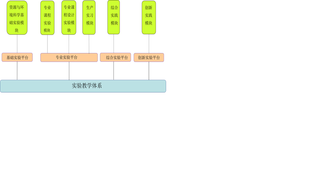 实验教学示范中心在原有实验教学平台基础上,依托我校资源与环境类多个优势特色学科和专业,加强政产学研合作和教学科研结合,促进交叉融合和资源整合,系统构建资源与环境类实验教学示范中心,在原有“学科平台基础实验—专业综合实践—综合实践能力拓展—创新能力提升”四层次实验教学体系的基础上,进一步优化体系结构,突出平台建设,模块化设计。针对不同年级、不同专业、不同层次学生的实验教学需求,搭建四个平台:一是以常规学科基础实验为主的;二是以不同学科工程需求为导向的专业实验平台;三是以适应于多学科交叉融合的综合实验平台;四是以各类工程及其应用为背景的创新实验平台。服务于四个平台,建设六个实验模块:地理专业课程实验模块、景观设计及环境工程基础实验模块、人文地理与城乡规划专业课程设计模块、生产实习模块、综合实践模块和创新实践模块。强化综合性、创新性训练,突出专业综合实验、学科综合和工程创新实践模块的设计,使课程紧跟专业技术前沿,加强综合实践能力和科研能力的培养,既充分体现先进性,又可根据不同学科专业对资源与环境类系列课程的不同要求实现灵活构架,达到高层次创新型工程人才培养的目的。从而使实验示范中心成为一个面向资源与环境科学专业的环境污染整治与资源化、景观设计与规划、康体休闲专业学生的新型工程素质教育、技能培训和解决工程实际问题的多功能实践教学基地。