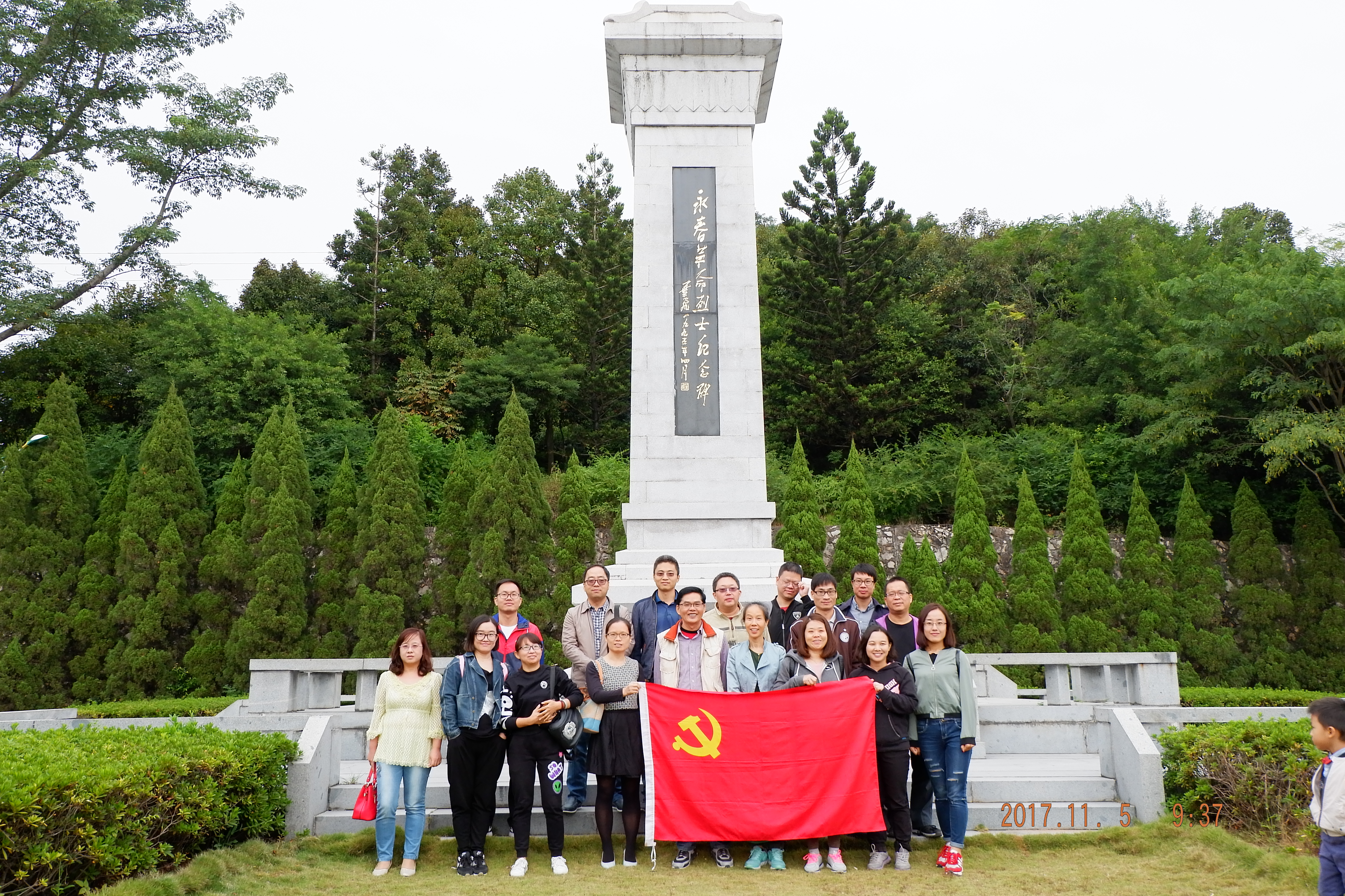 2017年11月5日,值十九大圆满闭幕之际,我院全体教师党员在党委书记黄联国的带领下,赴永春(留安山)革命烈士纪念碑等红色教育基地参观学习,开展主题党日活动,重温党的发展历程,缅怀革命先烈事迹。