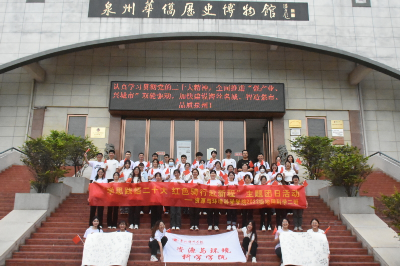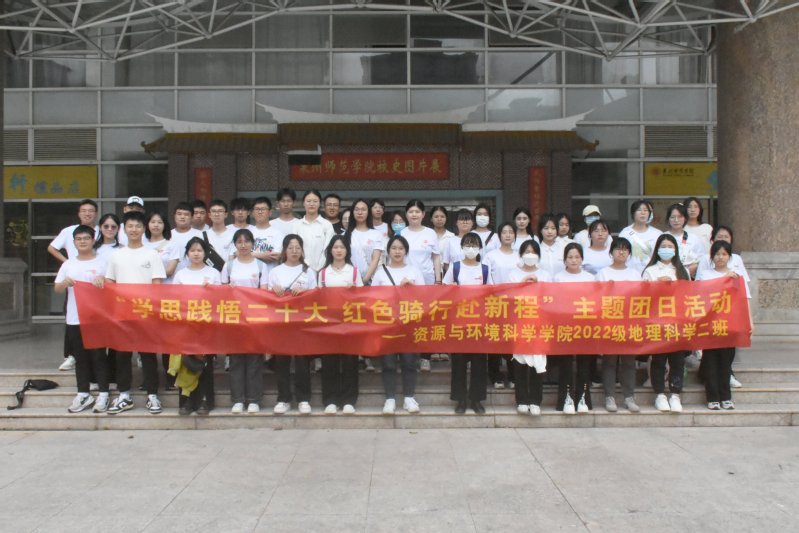 为深入学习贯彻习近平新时代中国特色社会主义思想和党的二十大精神,进一步激发广大团员青年爱党爱国爱社会主义的热情,切实把学习领会转化为当代大学生学习生活工作的强大动力。4月21日下午,我院2022级地理科学2班团支部组织开展“学思践悟二十大,红色骑行赴新程”主题团日活动,通过骑行的方式前往烈士陵园、华侨历史博物馆,重温党的光辉历史,缅怀革命先烈。