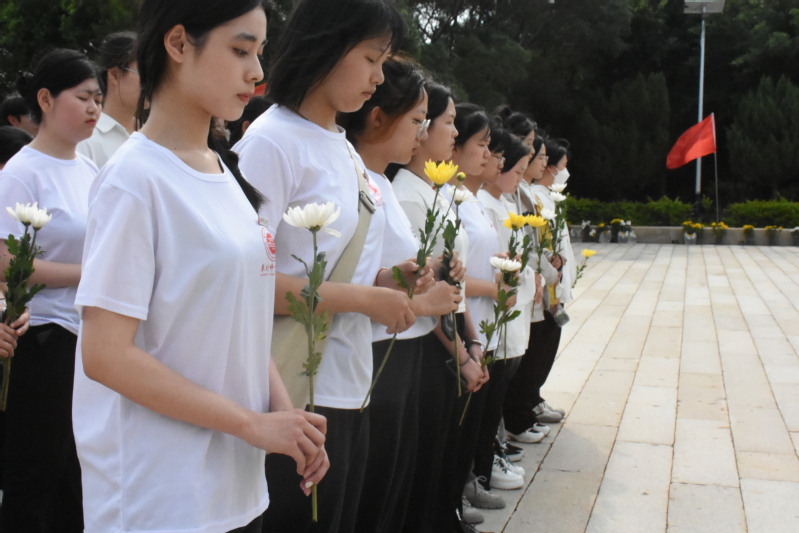 全体成员绕革命英雄纪念碑一周,瞻仰革命英雄纪念碑,并依次向先烈们敬献花朵,致以崇高的敬意和无限的敬仰。并在纪念碑前肃穆静立,默哀一分钟,深情缅怀革命先烈,寄托对革命先烈的无限哀思。