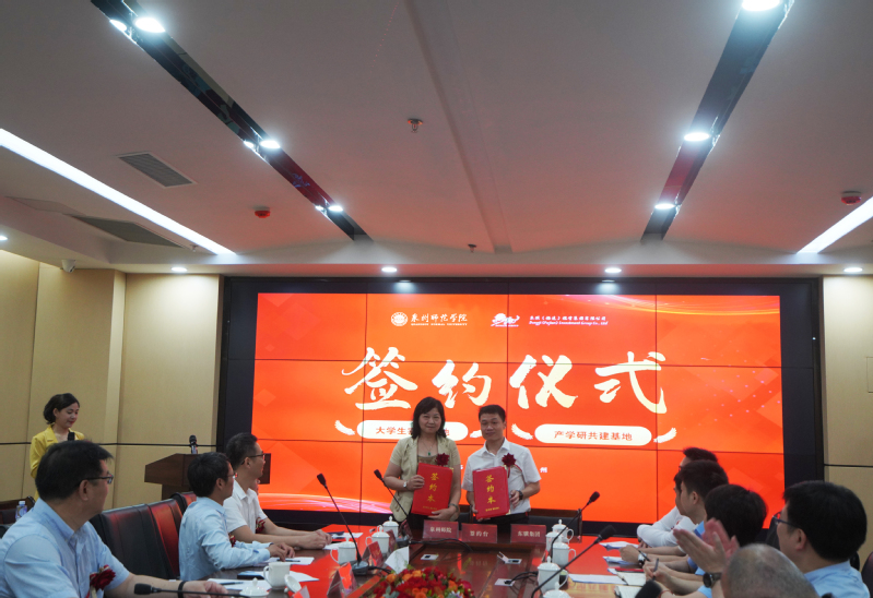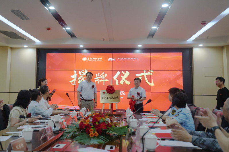 5月16日,资环学院与东骥(福建)投资集团有限公司(以下简称东骥集团)在丰泽区海西育成基地共同举行“产学研共建基地”“大学生实践基地”签约仪式。副校长夏侯建兵,丰泽区市场监督管理局局长康招传、副局长蔡安莉,丰泽区工业信息化和科技局副局长章嵘坚,东骥集团董事长黄海滨、总经理林耀中,资环学院院长李子蓉、书记江文元、教师代表,科技处、实习实训处相关人员,政府代表,企业代表参加活动。副校长夏侯建兵与丰泽区市场监督管理局局长康招传共同为“产学研共建基地”“大学生实践基地”揭牌,院长李子蓉与东骥集团董事长黄海滨代表双方签署协议。