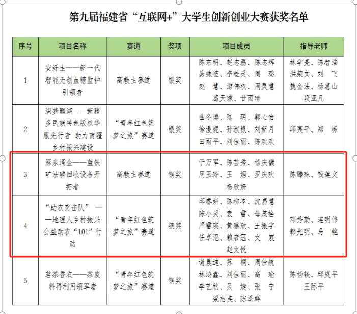 近日,福建省教育厅公布第九届福建省“互联网+”大学生创新创业大赛获奖名单,我院喜获2项铜奖佳绩。