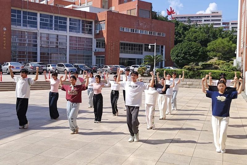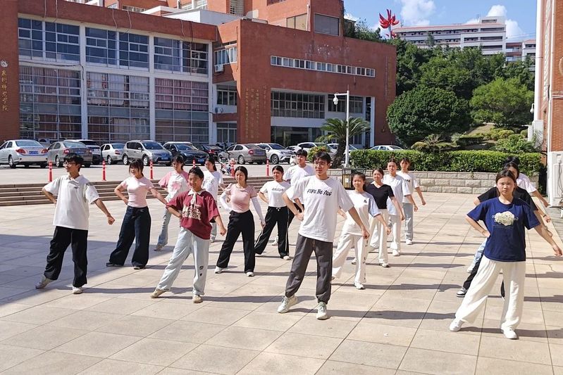 抬起脚尖是鼓点和节拍,落下手臂是掌声与鲜花。金秋十月,舞动青春,啦啦操队员们排好队列,在学生会文娱部学姐学长们一声声的指令下开始舞动身体,力求让每一个动作展现出力量和美感。每一滴滑落的汗水、每一个重复的动作、每一次用力的踢踏、每一个精准的队形变换,都体现啦啦操队员筹备活动的辛勤付出。