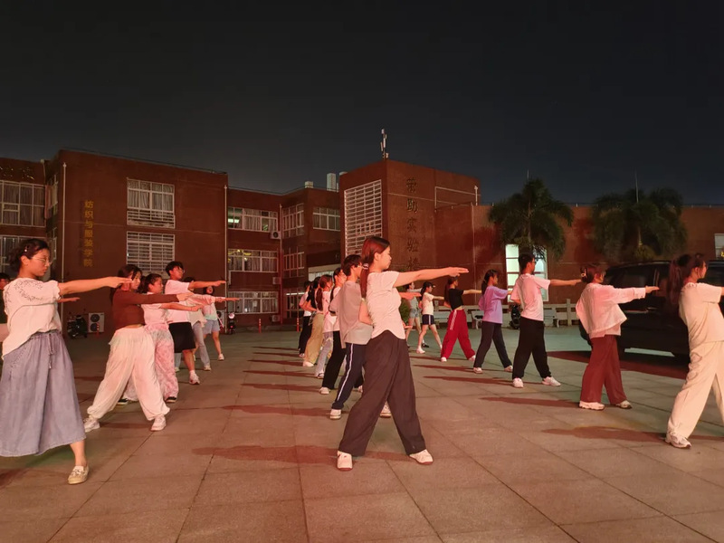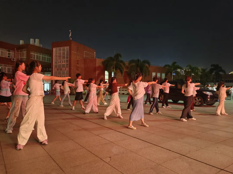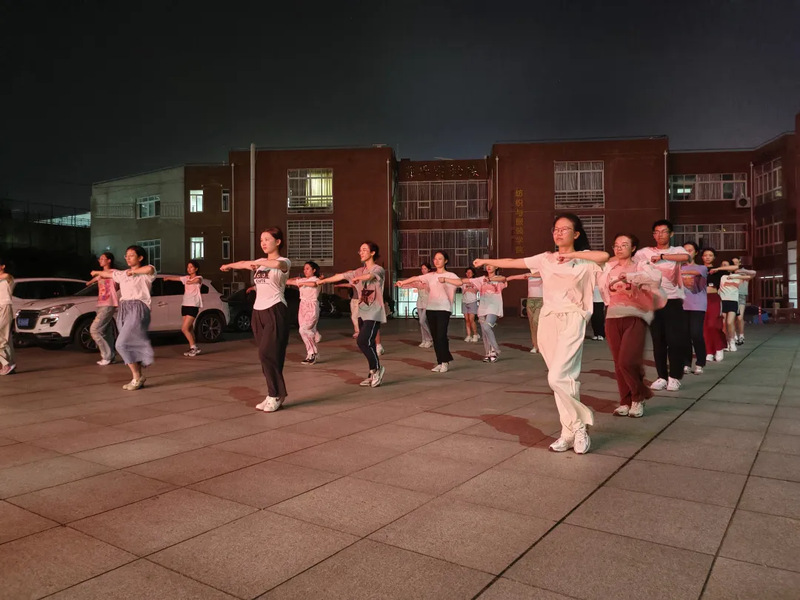 随着夕阳余晖隐去,资环学院邱天生实验楼前盏盏灯火亮起。墨蓝色的夜空下,排舞新生们干劲十足,一次次的调整动作,一次次的抠细节,训练——反思——训练——反思。周而复始,坚持不懈,一次次刷新体力和耐力的上限。他们不仅在舞技上得到长足进步,更在互帮互助中促进自身全面发展。