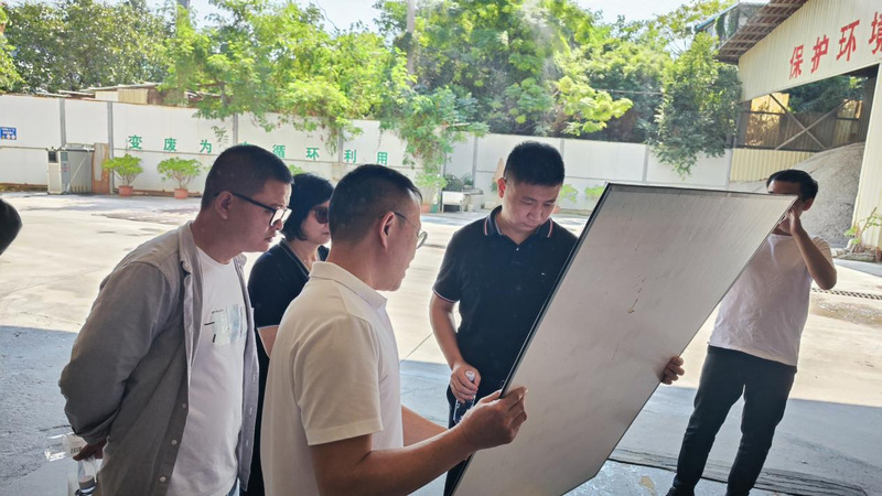 李子蓉院长一行依次参观了魔石家具工厂、石材加工厂、朴一村和埕边村。深入了解了再生石的发展历程、产品加工流程、石粉的制作环境和流程、固废资源化利用情况,并在参观中进行了取样调查。