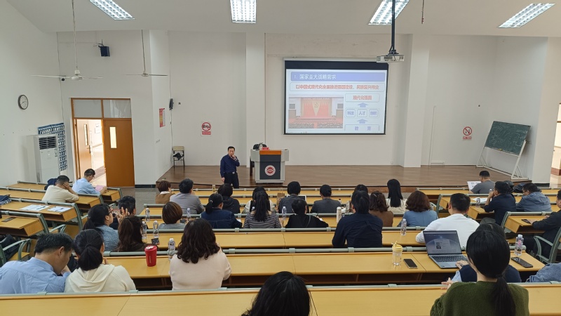 谭长银教授针对教学成果奖的培育与凝练,指出要坚持立德树人初心,深化教育教学改革,推进教育数字化建设,促进科研和教学的融合,结合人才培养工作有意识地进行教学成果奖的培育,获得高质量的教学成果,为学院各项事业高质量发展贡献力量。
