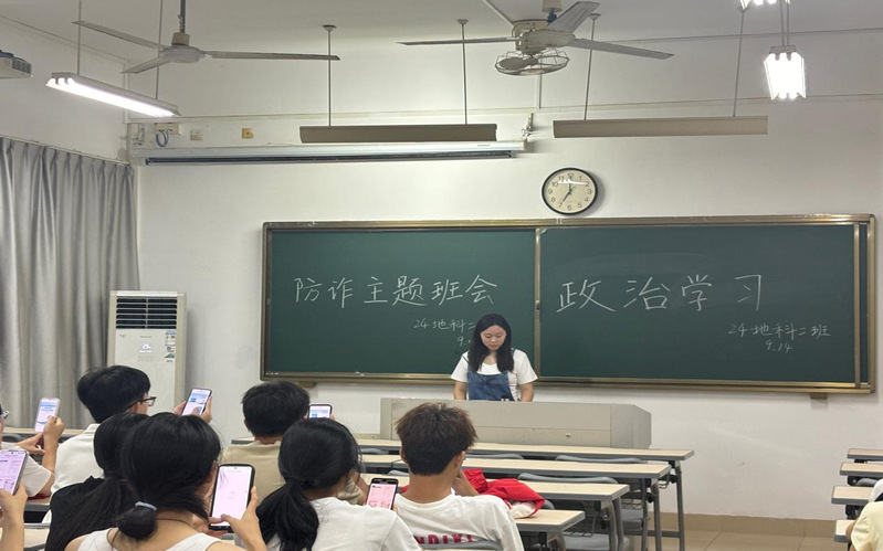 各班级于9月中旬集中召开“青春无诈,开学慧防”防诈骗主题班会,组织学习《防范电信网络诈骗宣传手册(2025版)》,通过典型案例警示,引导学生认清“两卡”犯罪、网络黑灰产等的危害,自觉做到“不轻信、不透露、不转账”。