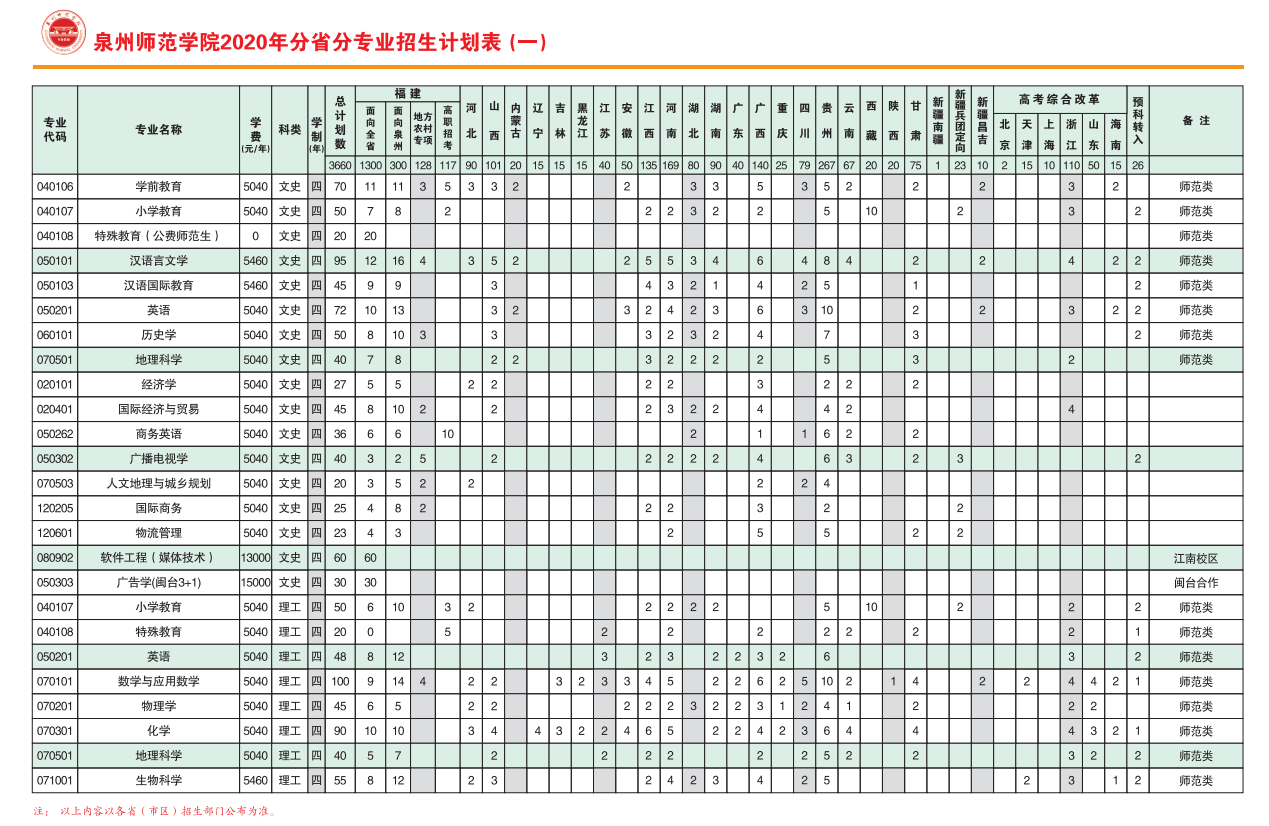 英国威廉希尔公司官网2020年普通本科分专业招生计划表