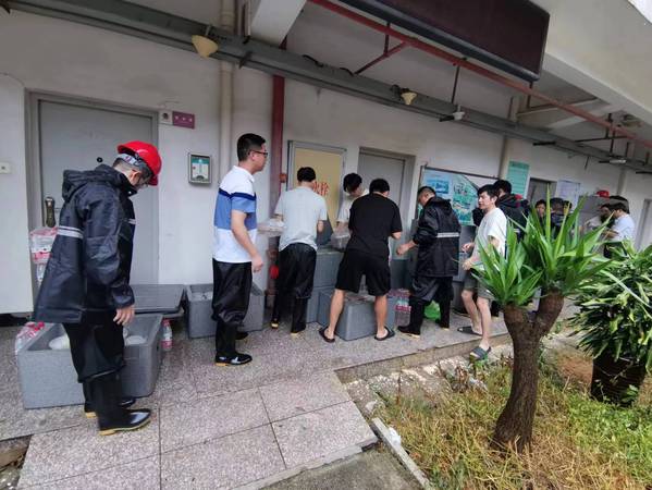 贴心守护暖心服务。突击队队员们化身“外卖小哥”,深入防抗台风一线,无惧风雨,在注意自身安全的同时,奔波于学生宿舍楼之间,确保每一位暑期留校学生能准时吃上可口的饭菜,并及时叮嘱留校学生做好安全防范台风工作。