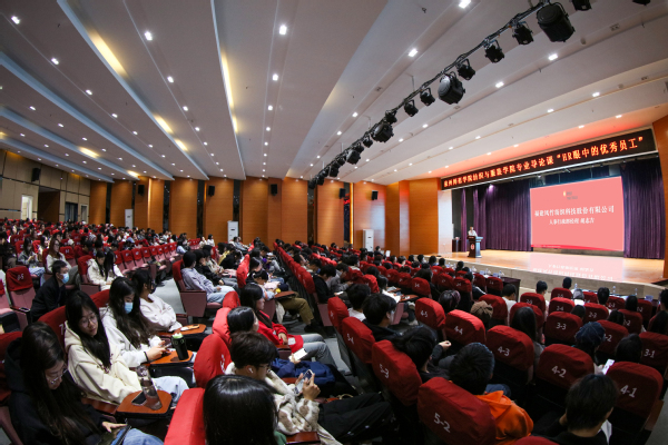 凤竹公司HR胡志吉以“成功从职业规划起航”为主题,从公司介绍、福利待遇、员工成长路线、企业希望的优秀人才四个方面进行授课,激励同学们要努力学好专业知识,注重理论联系实际,同时要善于思考和总结,并且在遇到困难时能够有担当、有作为,争取在将来的工作中成长为行业顶尖人才。
