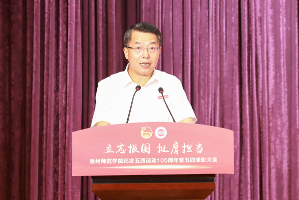 柯瑞清代表校党委向全校青年师生致以节日问候和诚挚祝愿,充分肯定了过去一年学校各级团组织团结带领广大青年师生踔厉奋发取得的显著成绩。他强调,全校青年师生要牢记习近平总书记的谆谆教诲,奋力书写为中国式现代化挺膺担当的青春篇章,并结合省委书记周祖翼在团省委调研时的讲话精神,对全校青年学生提出四点希望:一是坚定理想信念,听党话跟党走。要在学懂弄通做实习近平新时代中国特色社会主义思想中不断厚植对党的信赖、对中国特色社会主义的信心、对马克思主义的信仰,悉心感悟习近平总书记对福建的特殊厚爱,满腔赤诚、满怀深情地走好坚定拥护“两个确立”,坚决做到“两个维护”的第一方阵。二是赓续五四精神,积蓄青春力量。要紧密团结在党的旗帜下,坚持用习近平新时代中国特色社会主义思想凝心铸魂,把个人奋斗融入党和国家事业之中,砥砺奋进,以“闯”的精神、“创”的劲头、“干”的作风,践行使命担当,用实际行动书写人生价值。三是练就过硬本领,施展青春才干。要在学习与实践中学真知、悟真谛,不断掌握新知识、熟悉新领域、开拓新视野,以勤为径,把为党为国建功立业的基石打深打牢,在实践中经风雨、壮筋骨,蓄满青春能量,走好人生之路。四是矢志报国追梦,续写青春故事。要砥砺“不怕苦、能吃苦”的精神品格,在实践中锤炼不畏艰险、不惧风雨的拼劲和韧劲,关键时刻扛得了重担、打得了硬仗、经得住磨难,勇立时代潮头、主动挺膺担当,用奋斗绘就亮丽的青春画卷。