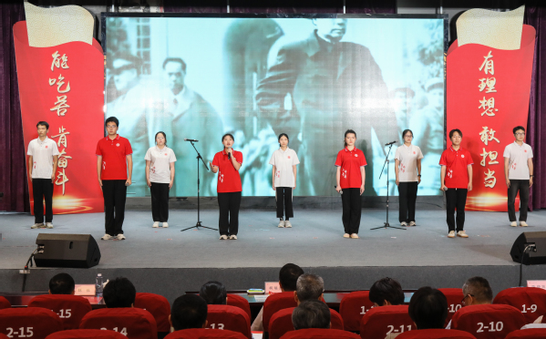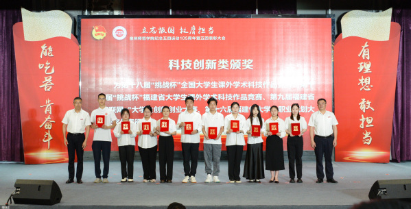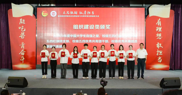 与会领导为受表彰集体和个人代表颁奖。大会中还穿插了经典诵读、读书分享、团支部立项展示、社会实践成果展示、新团员入团宣誓暨团歌合唱、思政微课、红歌传唱等师生思政成果,展现了我校青年向上向善的昂扬风采。最后,大会在《光荣啊,中国共青团》激昂奋进的旋律中圆满落下帷幕。