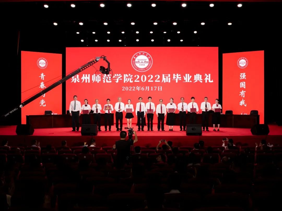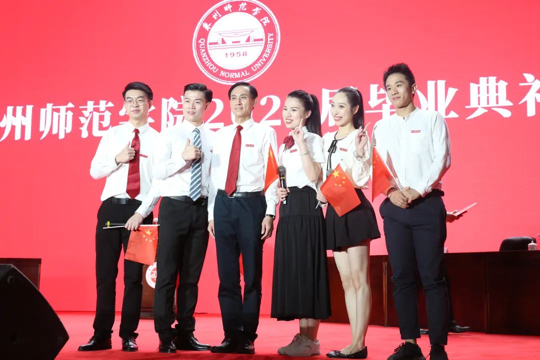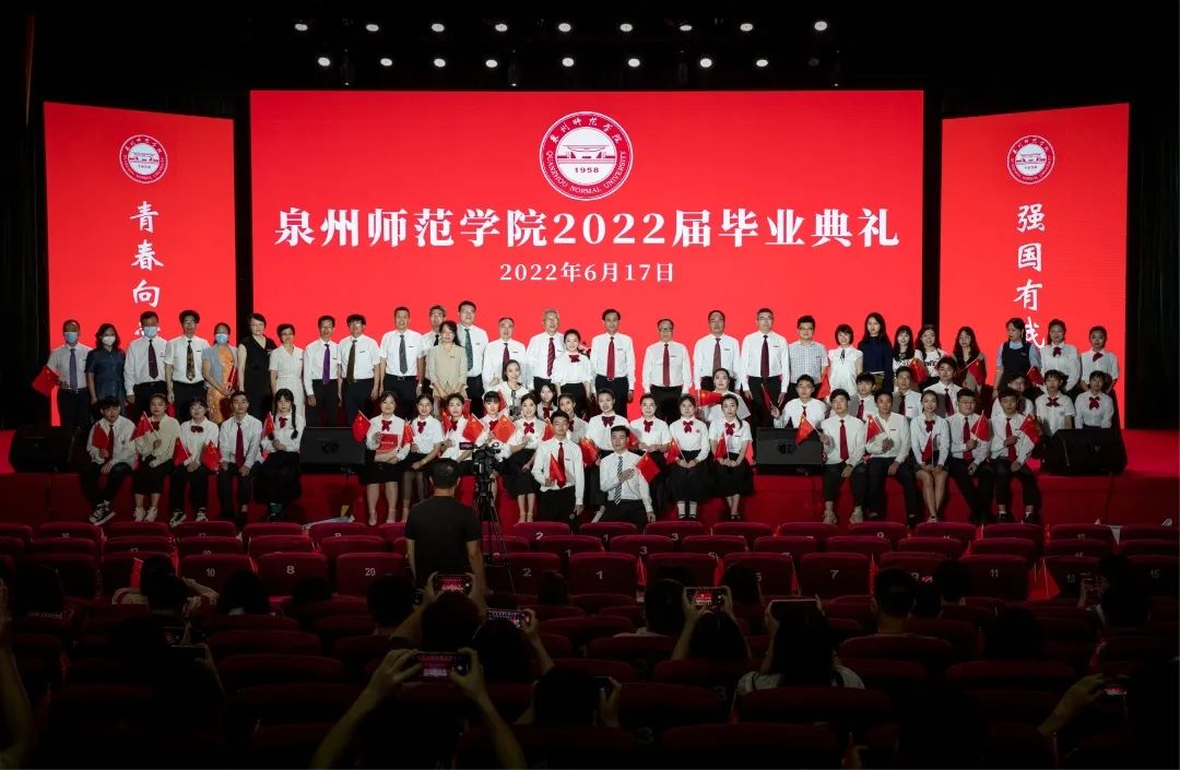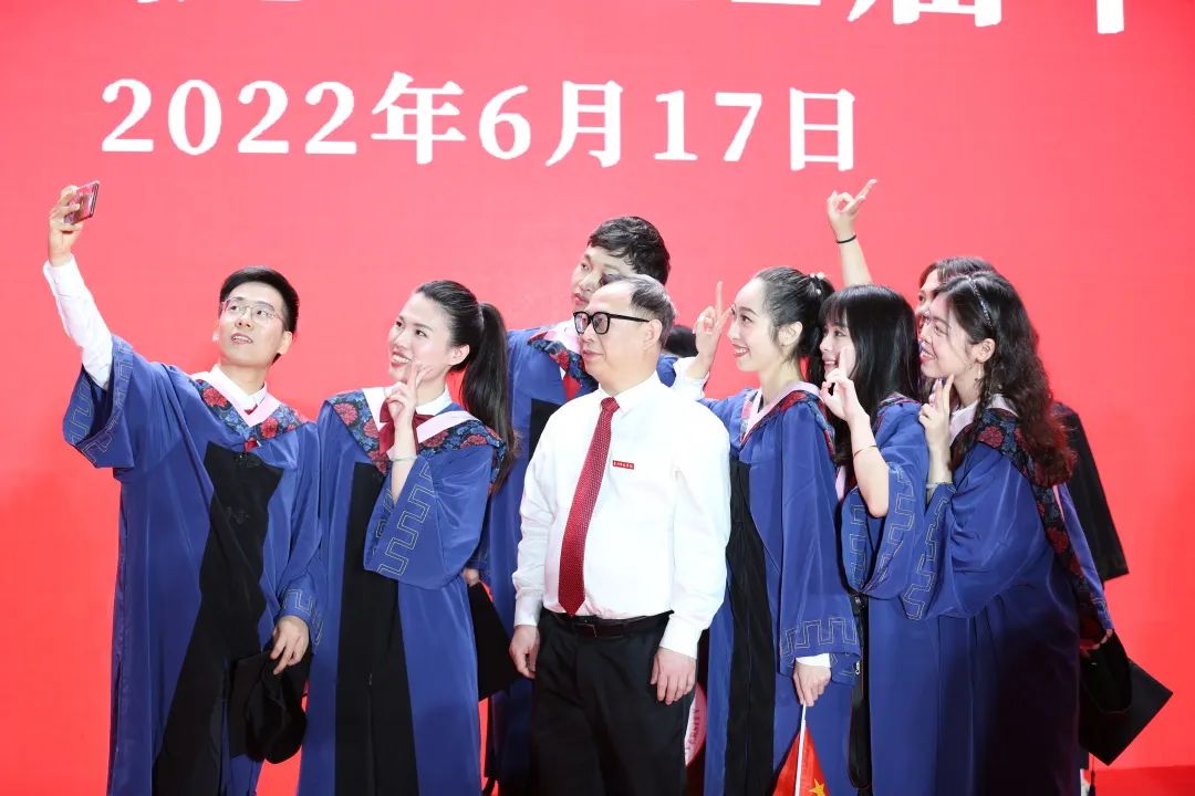 毕业典礼结束后,校领导与毕业生代表合影留念。2022届毕业典礼在热烈美好的氛围中落下帷幕。