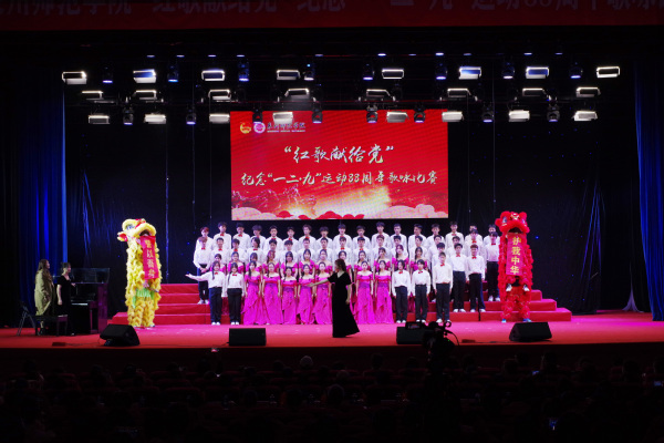 12月7日下午,我校举行“红歌献给党”纪念“一二·九”运动88周年歌咏比赛。校领导柯瑞清、陈晓风、陈明森,相关职能部门负责人,各二级学院党委(党总支)书记、副书记、团委负责人,师生代表近1300人参加活动。