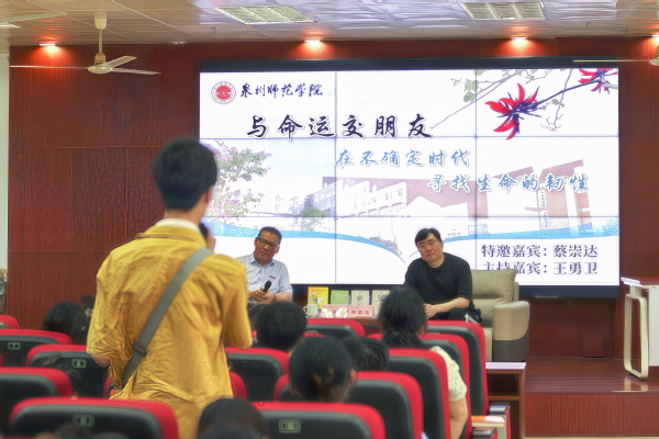 蔡崇达从自身经历出发,勉励学弟学妹们,面对生活的不确定性,文学能照见生命韧性的源头,那些看似“无法和不能”的困境,通过对阅读、观察、思考等小事的持续深耕,可以转化为“可以和可能”,从而拓宽生命自由度。他表示,命运不是被安排的赛道,而是在看透本质后跑出来的路。期间,同学们踊跃举手提问,围绕故乡、《命运》创作初衷、生命的韧性、生活与生命等话题进行了热烈讨论。