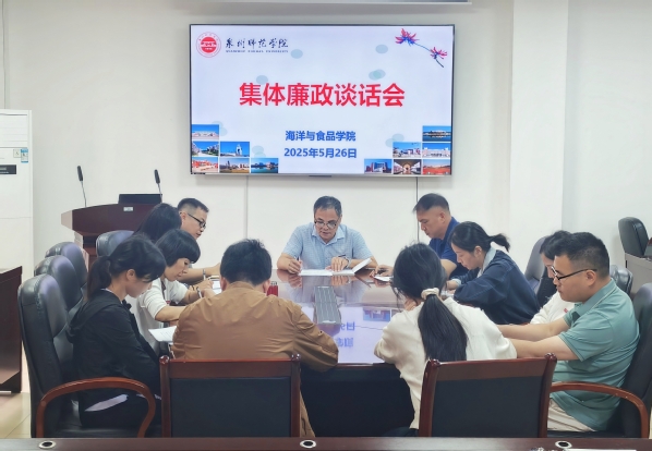 5月26日端午节来临之际,海洋与食品学院在449会议室召开集体廉政谈话会。学院领导、党委委员、党支部书记、各系主任、各办公室(实验中心)负责人参加会议。学院党委书记蔡志荣讲话,党委副书记、纪委书记刘礼元主持会议。