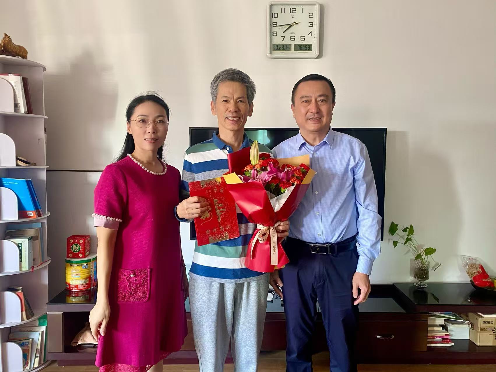 秋阳送暖,花香情浓。在重阳节来临之际,受校党委委托,党委副书记林伟带队走访慰问了我校70、80、90岁老同志,代表学校向他们致以节日的诚挚问候和崇高敬意,并送上鲜花、贺卡及祝寿金。