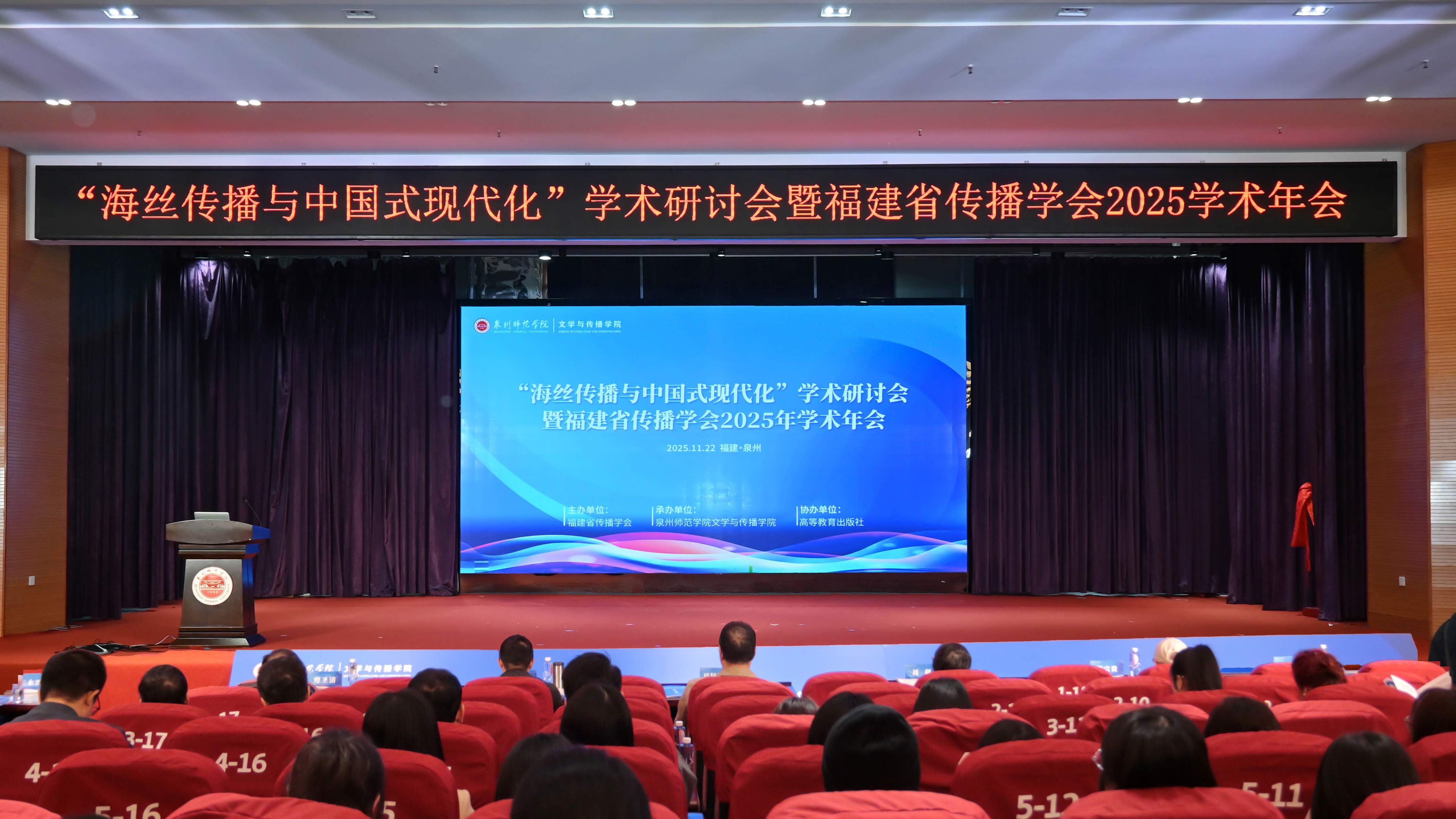 11月22日,“海丝传播与中国式现代化”学术研讨会暨福建省传播学会2025年学术年会在我校举办。中国社会科学院新闻与传播研究所副所长刘利、我校副校长夏侯建兵、福建省传播学会会长谢宗贵、泉州市委宣传部副部长庄泓鸿等出席活动。来自中国社会科学院、复旦大学、厦门大学、福建师范大学、福建省广播影视集团等省内外专家学者,多所高校和科研机构、广电媒体的专家学者、论文入选的研究生作者参会。