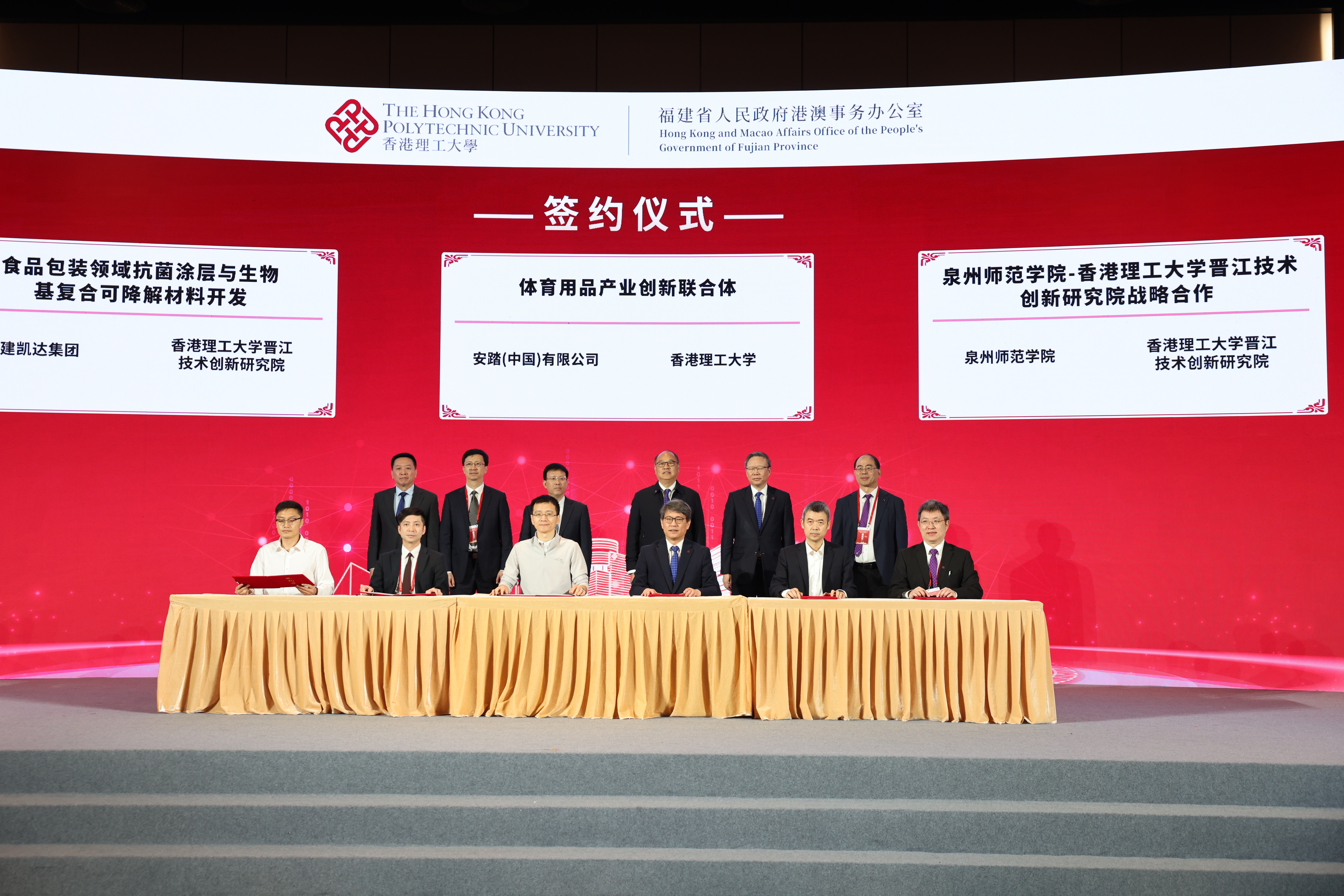 2025年12月13日,在晋江会展中心举行香港理工大学科技成果转化大会。在福建省副省长林瑞良,全国政协委员、香港理工大学校董会主席林大辉,中国科学院院士、香港理工大学校长滕锦光,福建省科技厅厅长李志忠,福建省港澳办主任黎林,香港理工大学常务及学务副校长黄永德共同见证下,陈昌萍代表学校与香港理工大学晋江技术创新研究院签署了战略合作协议。香港理工大学创立于1937年,是一所科研实力强劲的综合性研究型大学,在QS世界大学排行榜中位列全球第54位,此次签约标志着学校与香港理工大学及其晋江技术创新研究院的合作迈上新的台阶。(台港澳事务办公室)