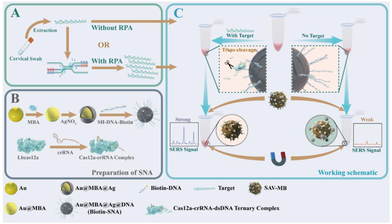 图3. 基于CRISPR-SERS 技术的宫颈癌高危分型快检示意图
