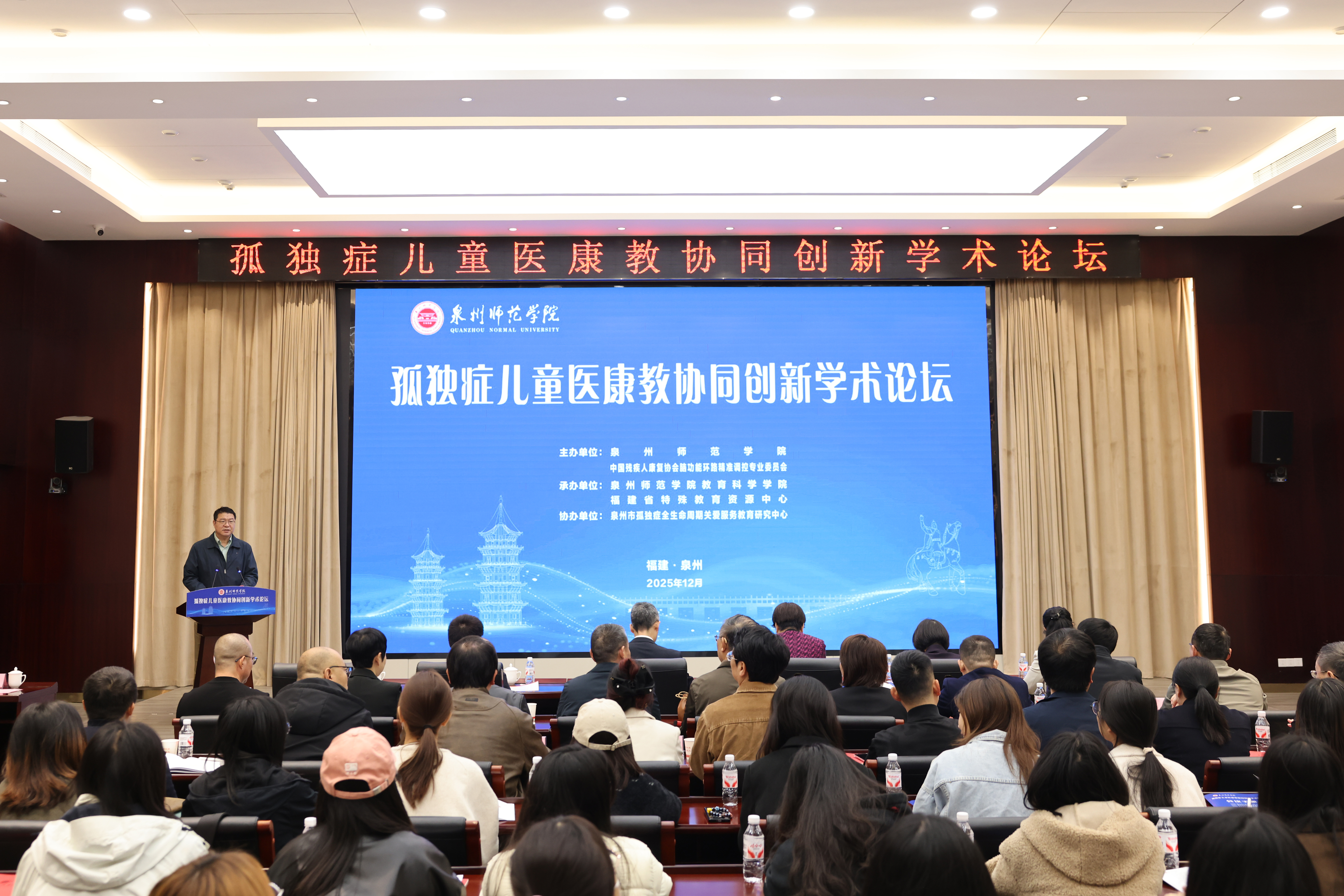 12月29日上午,福建省孤独症儿童教育指导中心、孤独症儿童医康教协同创新中心揭牌仪式暨孤独症儿童医康教协同创新学术论坛在我校举行。中国残疾人康复协会理事长凌锋,国家昌平实验室脑科学部主任、首席科学家刘河生,中国康复研究中心副主任张皓,福建省残联副理事长廖艺萍,福建省教育厅基础教育处处长余志丹,福建医科大学附属第二医院院长胡建民,泉州市残联党组书记黄建洪,泉州市教育局四级调研员纪如等专家、领导出席开幕式,我校校长陈昌萍、副校长夏侯建兵出席会议。来自全国医疗、康复、教育等领域的百余名专家学者、一线工作者及相关社会各界人士齐聚一堂,围绕孤独症儿童全生命周期关爱服务体系构建展开深入研讨,共同探索医康教协同创新路径。