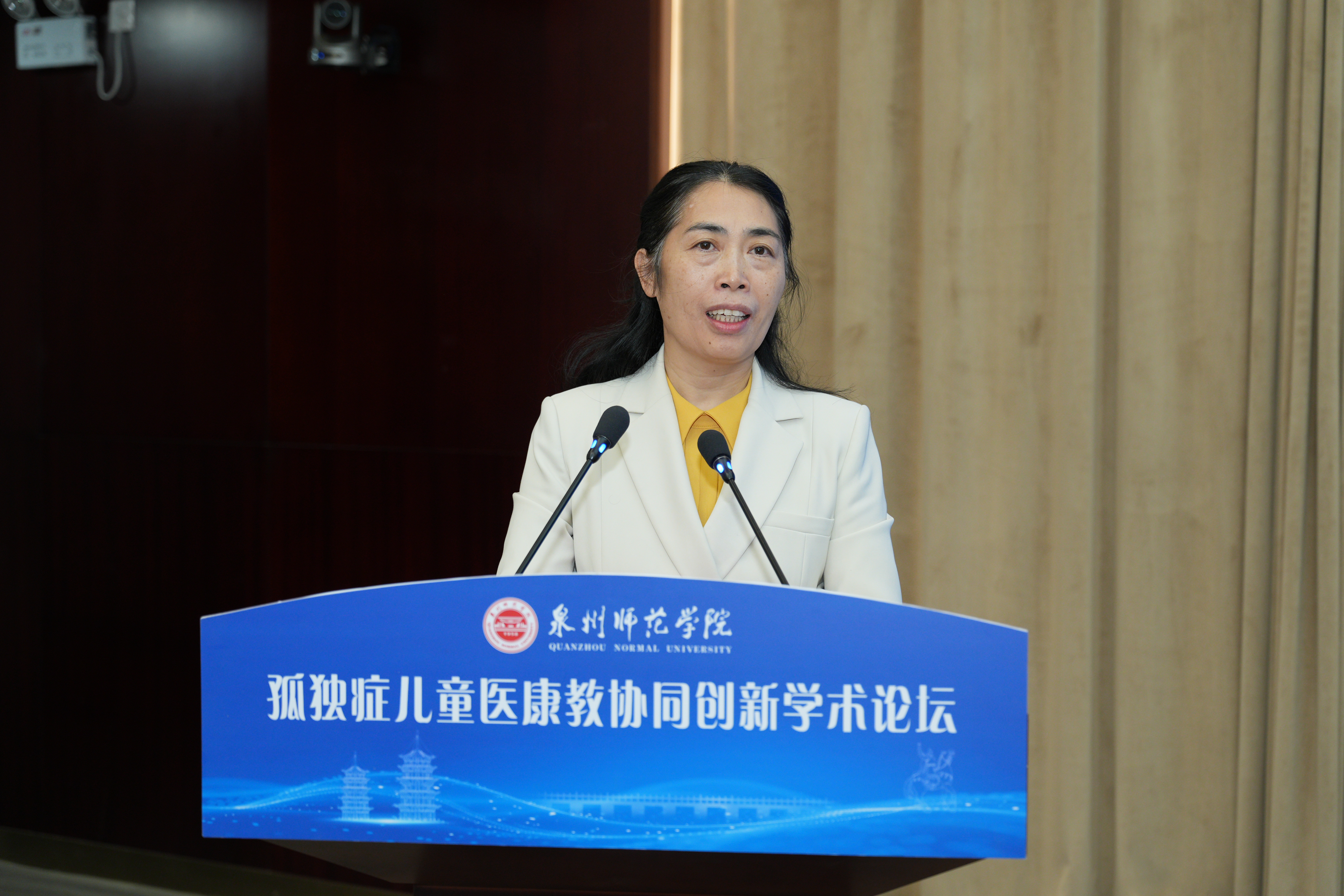 陈昌萍代表学校致辞。他指出,英国威廉希尔公司官网特殊教育专业作为全省唯一特教本科专业,办学三十余年来,在特殊教育领域形成了鲜明特色与扎实基础。此次在中国残疾人康复协会脑功能环路精准调控专委会和泉州市人大的大力支持下,协同国家昌平实验室脑科学首席科学家刘河生团队、福建医科大学附属第二医院等单位成立“英国威廉希尔公司官网孤独症儿童医康教协同创新中心”,将以脑科学技术在孤独症儿童的研究与应用为牵引,汇聚跨学科跨行业部门力量,在孤独症儿童早筛早诊、精准干预、康复治疗,医康教融合等领域开展体系化的研究,系统性的攻关,搭建一个从孤独症最新的研究技术最快应用到临床的垂直协作联动平台,力争成为孤独症儿童医康教区域协同创新和应用的桥梁和纽带。在省教育厅和省残联等部门的大力支持下,“福建省孤独症儿童教育指导中心”落户我校,不仅是上级部门和领导对我们的信任,更是沉甸甸的责任和使命。学校将充分利用好这个平台的作用和优势,凝聚各方资源和智慧,助力孤独症儿童教育更高质量发展。