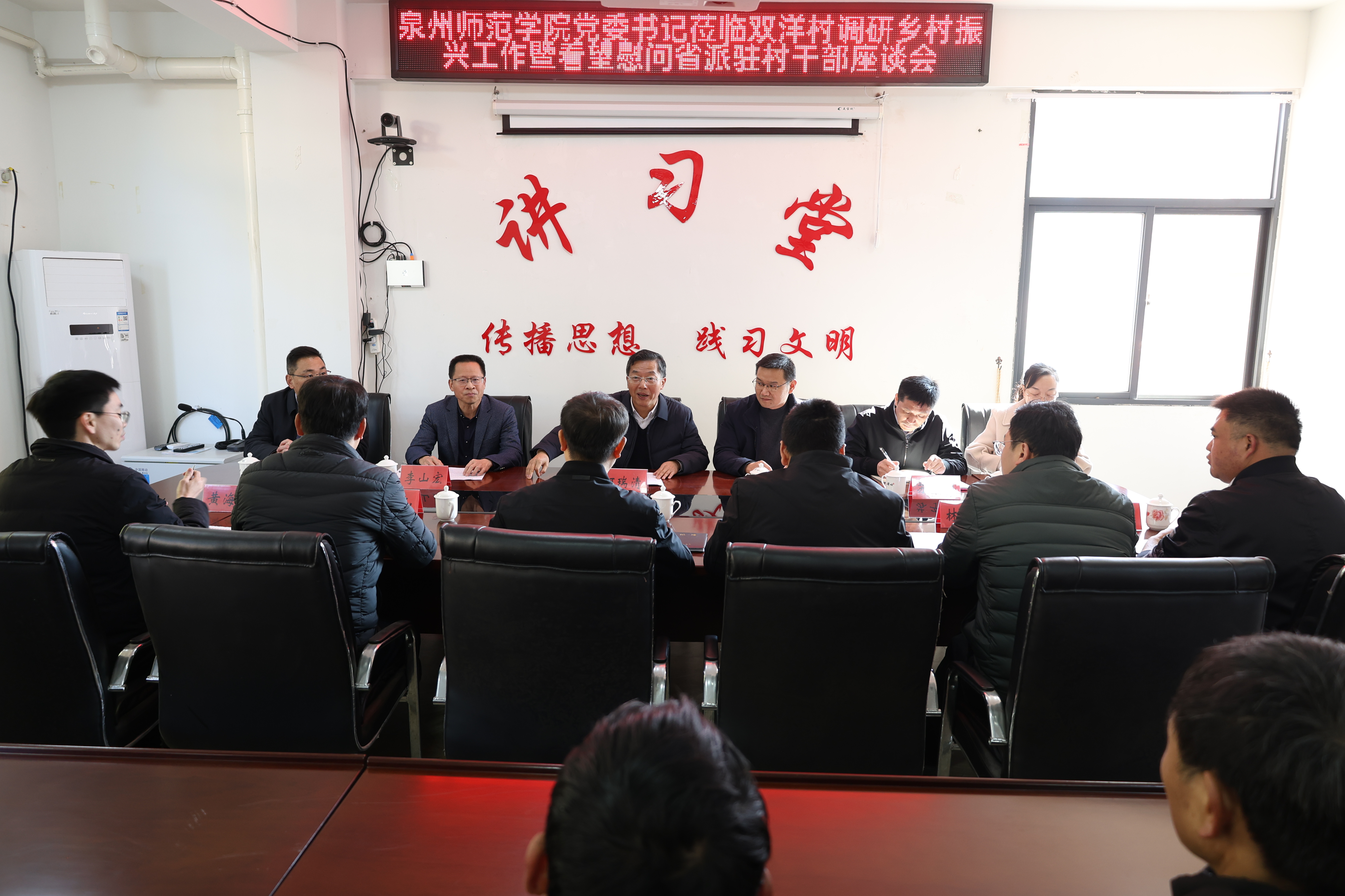 1月8日,校党委书记柯瑞清带领党政办、组织部、发规处、资源与环境科学学院、陈守仁商学院负责人,赴安溪县剑斗镇双洋村慰问我校省派驻村干部黄海滨同志,并开展乡村振兴调研,与县镇政府洽谈校地合作事宜。安溪县委书记吴毓舟,县委常委、副县长黄汉阳,县委组织部副部长、剑斗镇党委书记、双洋村两委等分别陪同调研。