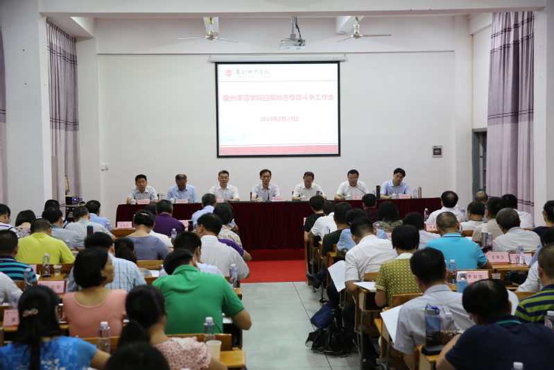 8月29日下午,学校在诗山校区召开扫黑除恶专项斗争工作会。校党委书记朱世泽主持会议并讲话。校领导屈广清、高云程、林伟、邱银富、陈亚兵、杨晓翔及全体中层干部出席会议。