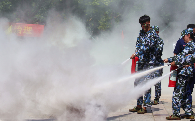 我校开展2019年“消防进军训”灭火和应急疏散演练活动