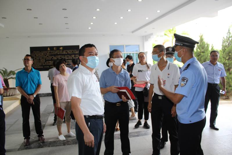 7月31日,丰泽区政常务副书记林电机、副书记薛晋,东海街道党工委书记黄文耀率领丰泽区2020年区域性治安稳定突出问题整治工作推进与会人员莅校参观、指导。校党委副书记林伟,后渚边防派出所所长分别向丰泽区政法委一行介绍了我校与后渚边防派出所借鉴“枫桥经验”开展警校共建、监控室和警务中心的建设及运行情况。