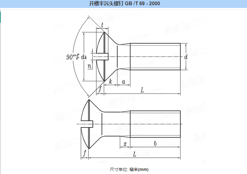 半沉头一字螺丝