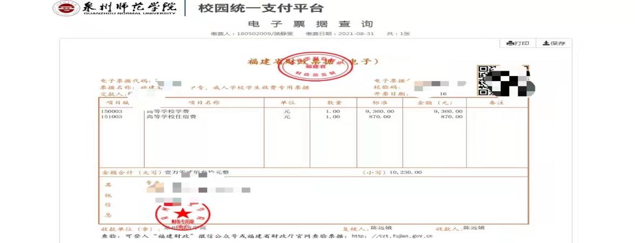 此电子票据就是您的缴费依据,财务处将不再统一打印纸质缴费票据。