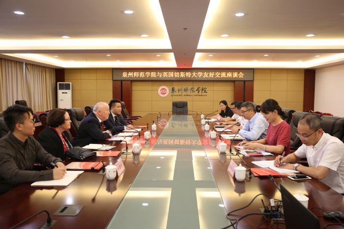 On October 15th, Prof. Phil Harris, vice president of University of Chester (UOC) and director of China Center, Irene Harris, senior researcher, and Mr. Shen Rong, chief representative of UOC, made a visit to QNU. Leaders of QNU, ie. Zhu Shize, Qu Guangqing and Huang Jiangkun, met with the guests. Attendees at the conference also included directors from office of the Party and administration, office of foreign affairs, office of academic affairs, School of Innovation and Entrepreneurship, and Tan Siu Lin Business School.