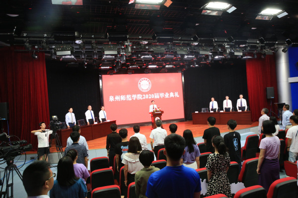 As the summer brings back memories of the elapsing college life, we are poised to gallop towards the bright future to pursue our dreams. On the morning of June 20, Quanzhou Normal University graduation ceremony was broadcast live in the studio of School of Literature and Communication. Among those at the ceremony for such a significant moment were representatives of the 2020 graduates, directors of relevant departments, faculty representatives and QNU leaders including Zhu Shize, Qu Guangqing, Lin Wei, Chen Yabing, Qiu Yinfu, Yang Xiaoxiang and Huang Jiangkun. Zhu Shize, Party Secretary of QNU, presided over the graduation ceremony.